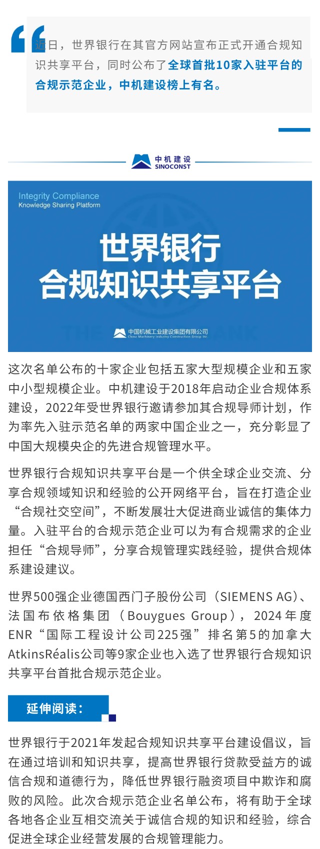 全球首批!荣登世界银行合规知识共享平台合规示范企业